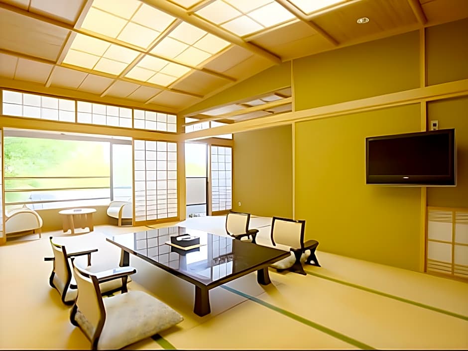 Features tatami (woven-straw) flooring and traditional futon bedding. This air-conditioned room comes with an LCD TV and an private bathroom. You can have a cup of green tea, try on the yukata robe or unwind in the private bath.